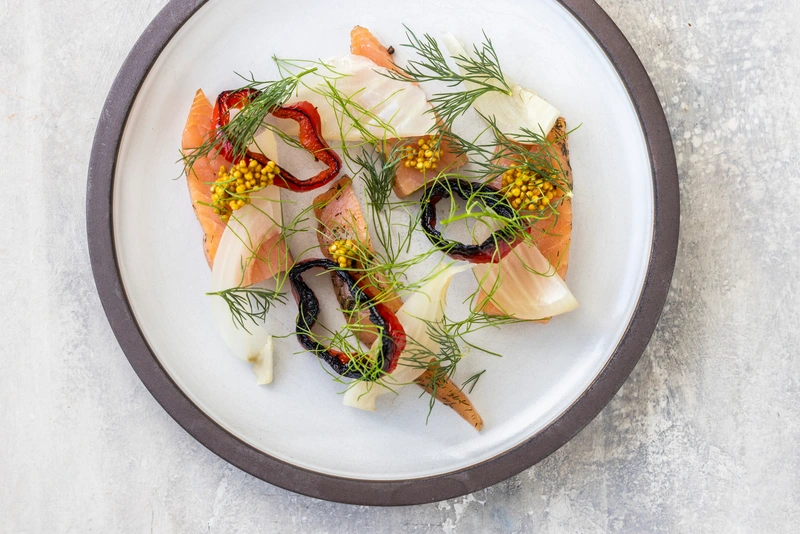 Fisk og tilbehør komponeret med balance, dybde og præcision. Retterne er skabt til at spille sammen – ikke blot stå alene.